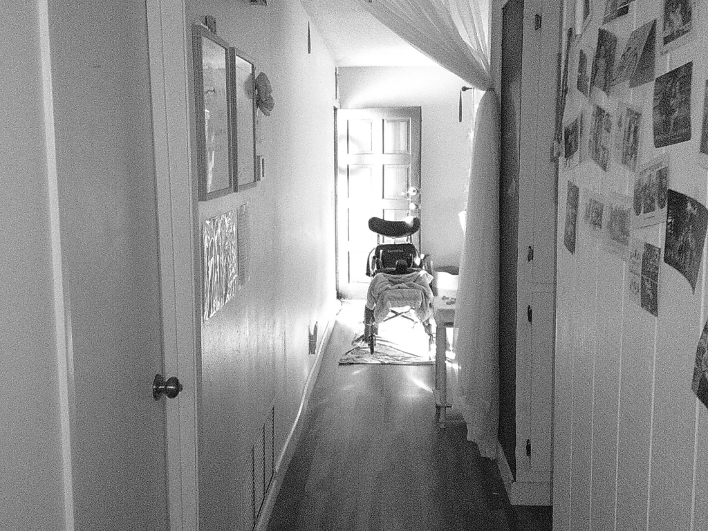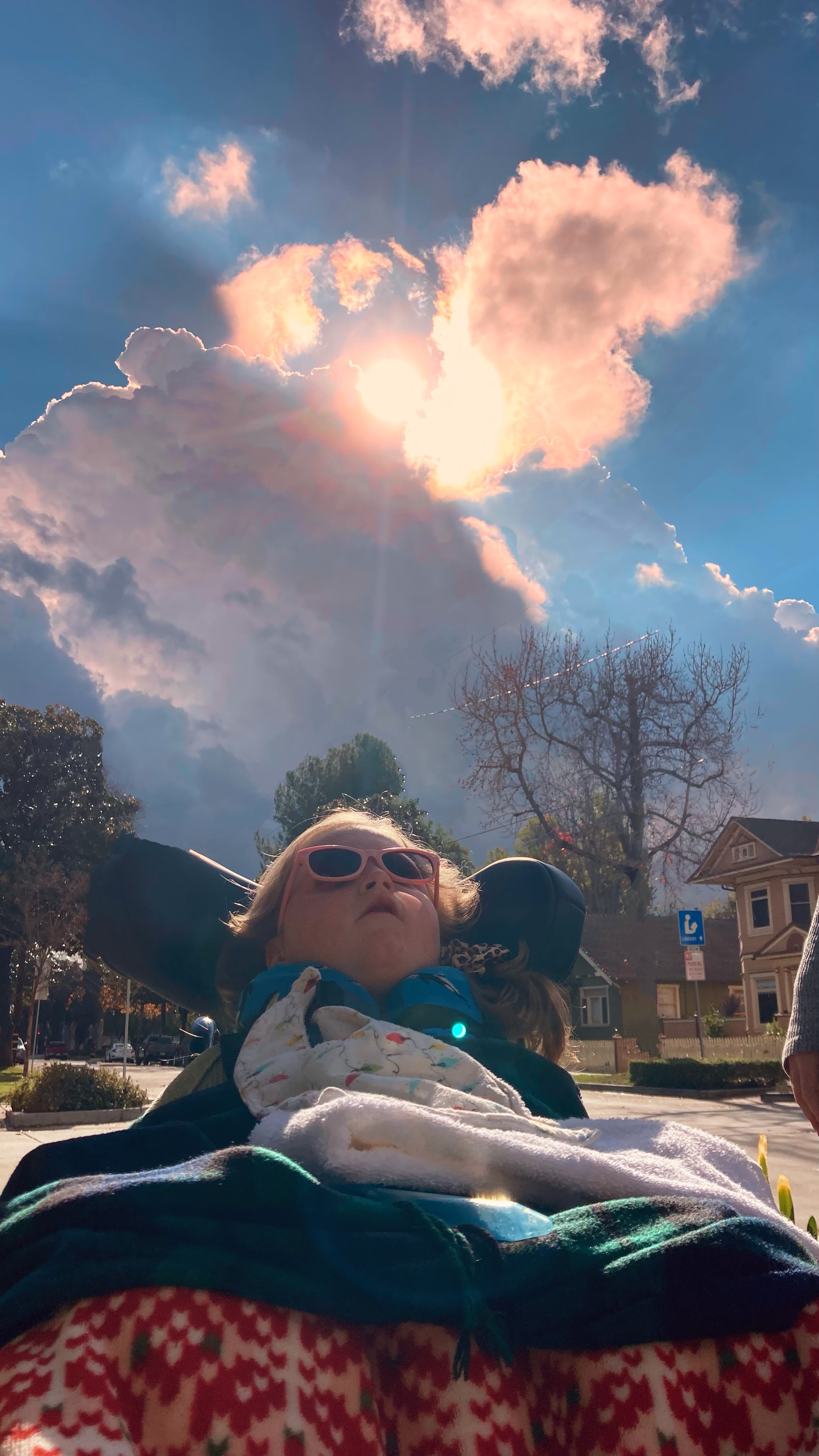 Her communication is minimal and bodily. Things like a blink, a tension in her jaw, the faintest smile that might mean delight or discomfort. I’ve become fluent in these signals, though my translations are always imperfect. When people meet her, they look to me to narrate what she’s feeling. I supply her lines. “She’s happy to see you,” I say. “She loves the lights.”